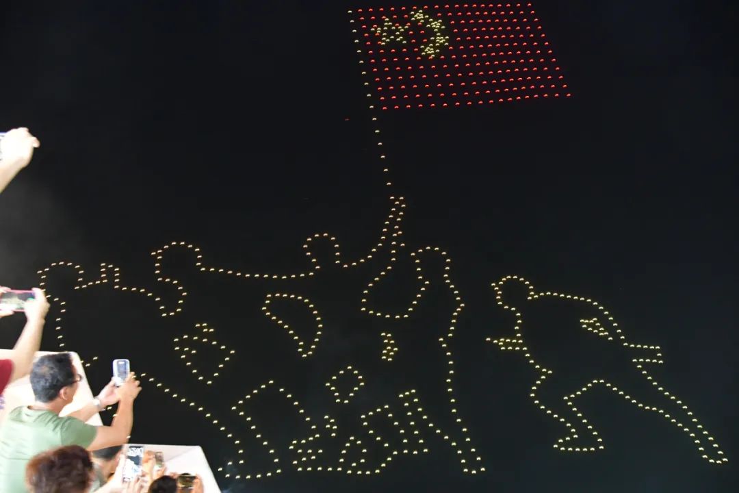 为纪念延安双拥运动80周年、东山保卫战胜利70周年,东山县精心策划了多项庆祝活动。此次通过精巧的编队和独特的灯光效果,为市民朋友及游客呈现了各种生动形象的国旗、烈士纪念设施、福建舰、歼20等图像和动画,也进一步歌颂东山保卫战中军民鱼水情深的深厚因缘,汇聚起军民团结的全国双拥模范县力量。