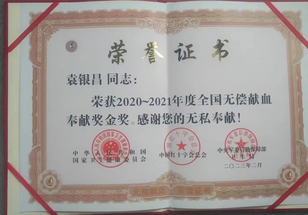 袁银昌,先后获得全国无偿献血奉献奖金奖1次、铜奖2次,被队员们称为“最低调的热血超人”。