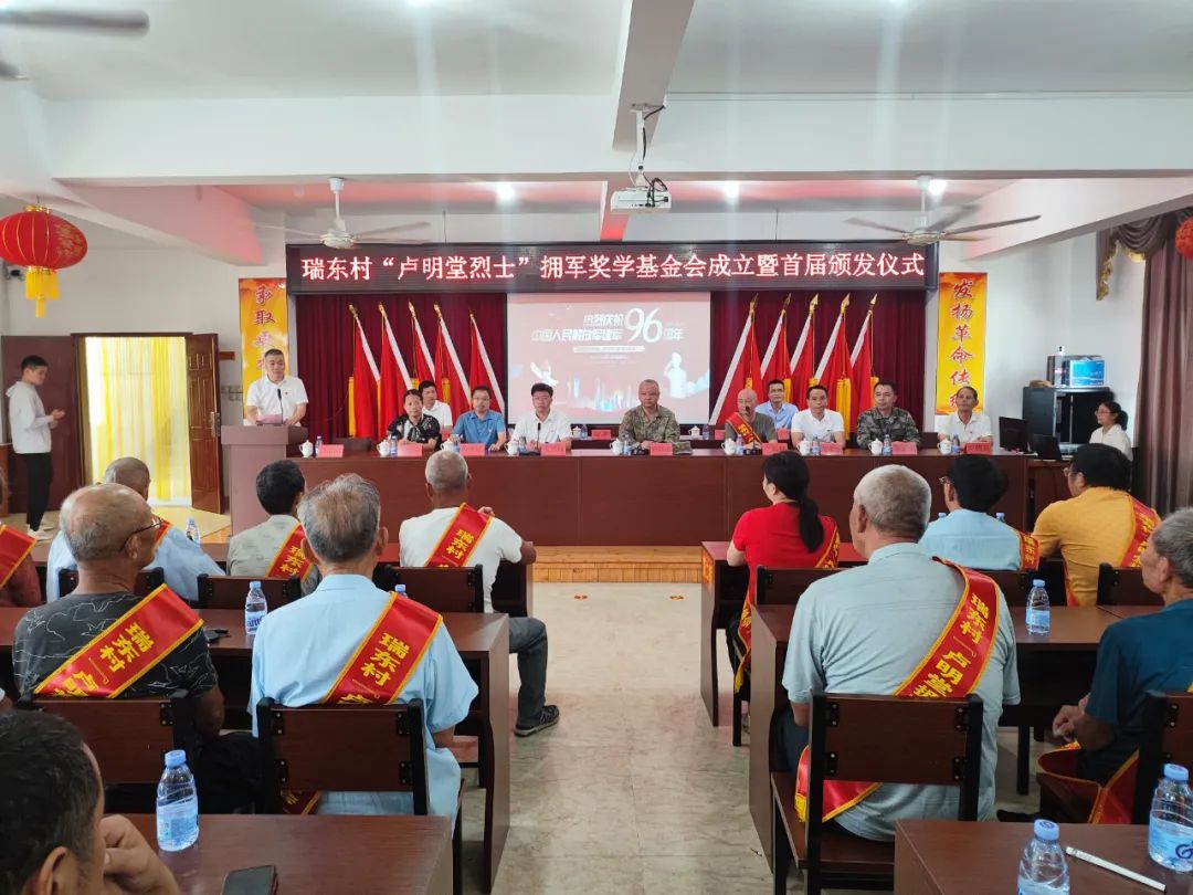 近日,在惠安县涂寨镇瑞东村,全省首个以烈士命名退役军人出资的村级拥军奖学基金会——卢明堂烈士拥军奖学基金会成立,并举行了首届奖励金颁发仪式,对部分优秀应征入伍青年、军人军属、退役军人和优秀学生进行表彰。
