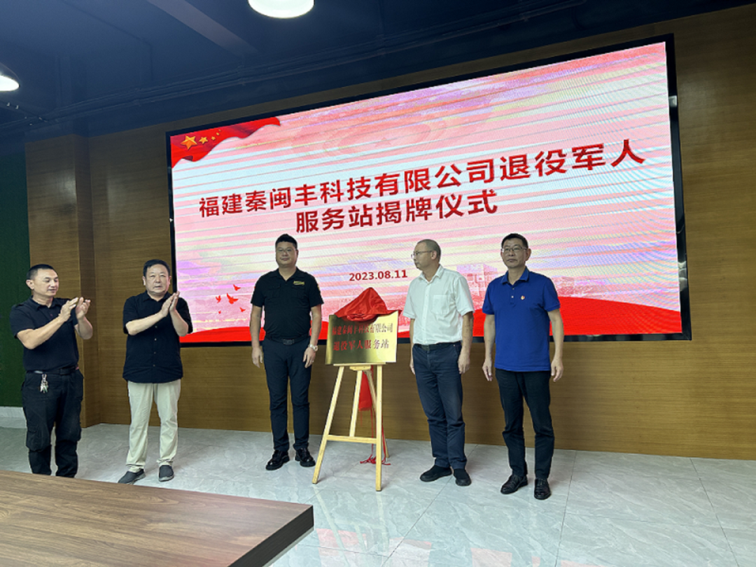近日,“福建秦闽丰科技有限公司退役军人服务站”正式揭牌成立,这是晋江市首家企业退役军人服务站。泉州市退役军人事务局副局长刘洪,晋江市退役军人事务局相关负责人、秦闽丰科技有限公司负责人和退役军人代表参加揭牌仪式。