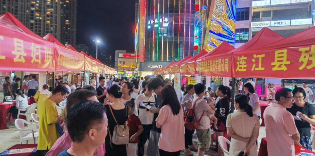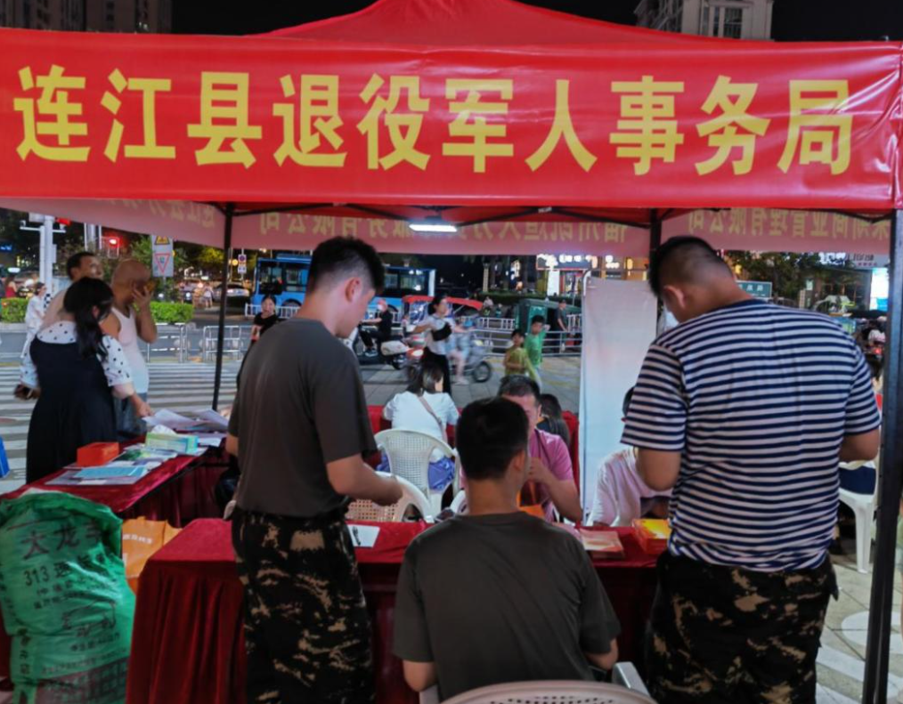 8月18日晚,福州市连江县在万星商业广场举办“百日千万招聘专项行动”退役军人专场招聘会。