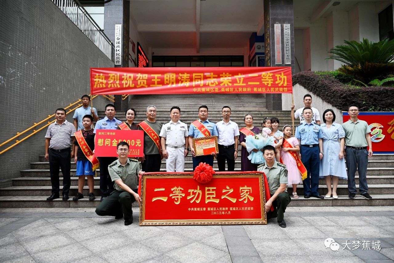 8月25日,宁德市蕉城区委常委、人武部政委林晓光,蕉城区政府副区长杨泰一行代表蕉城区委、蕉城区政府为荣立二等功的现役军人王明涛送去立功喜报,将党和政府的温暖传递给立功现役军人及其家属。蕉城区退役军人事务局、蕉南街道办事处、金涵畲族乡相关负责人陪同。