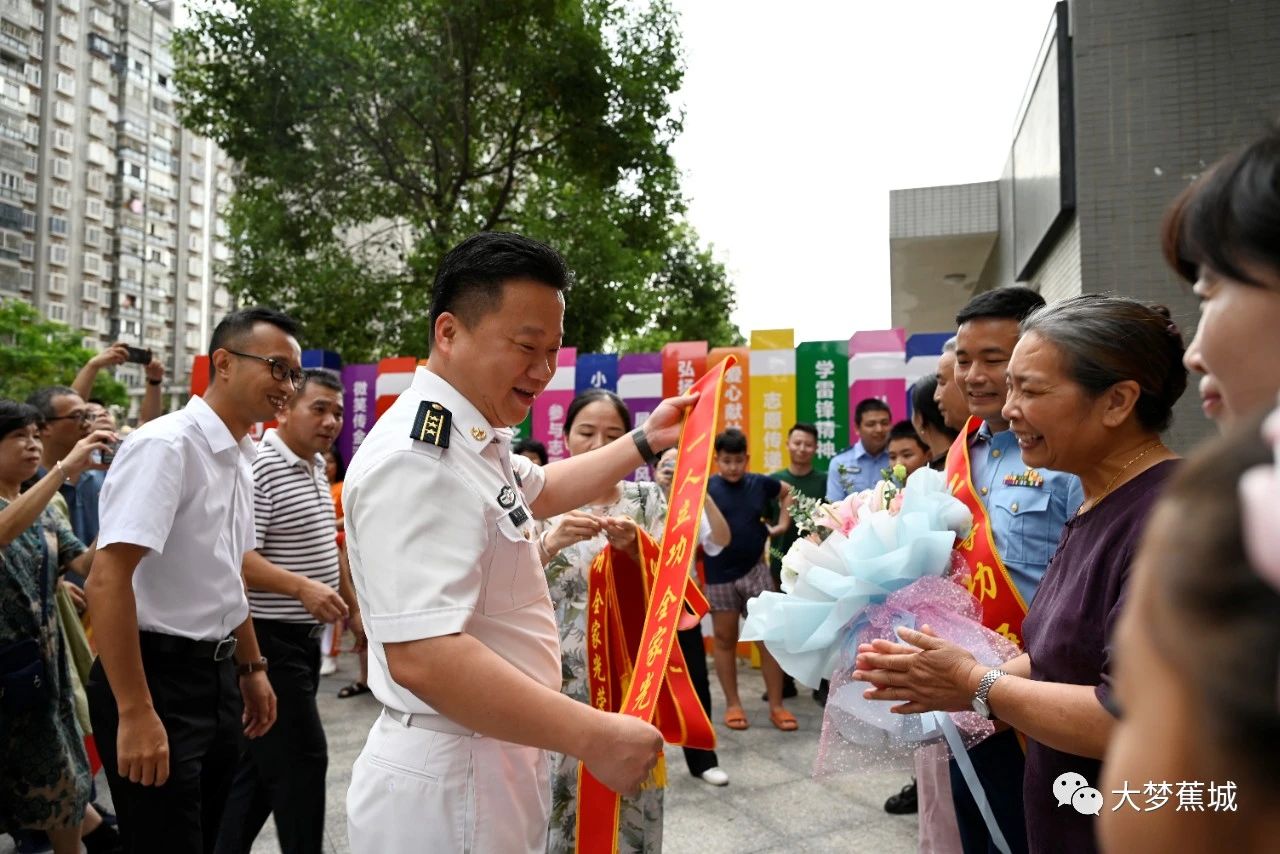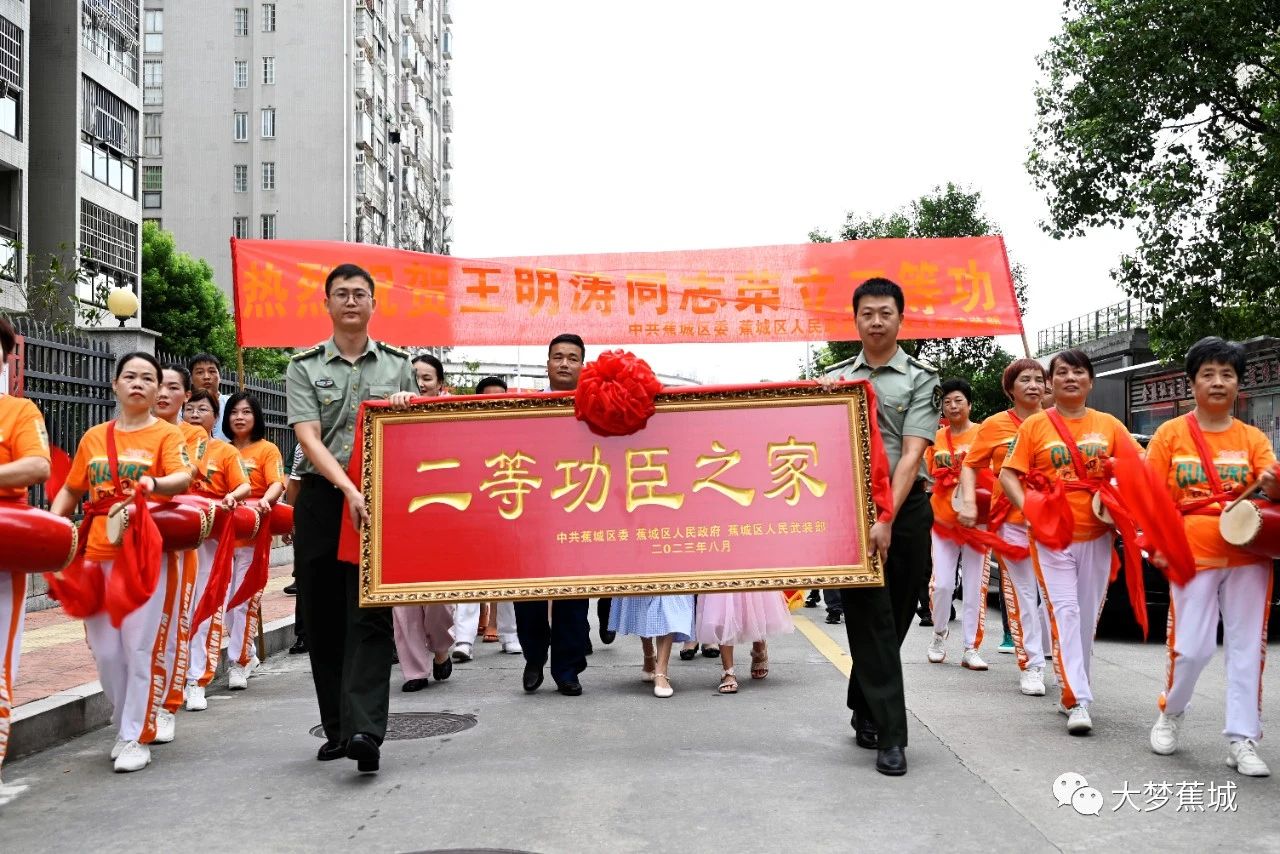 一人立功,全家光荣。伴随着激昂的锣鼓声,工作人员抬着“二等功臣之家”牌匾前往现役军人王明涛家中,周边的居民纷纷闻讯而来,并对王明涛与其家人表示祝贺。在其家中,林晓光、杨泰一行与王明涛及家属进行亲切交流。林晓光表示,军人为党和国家建设作出了突出贡献,是全区人民学习的优秀榜样,各级各部门要做好拥军优属工作,营造尊崇军人的良好社会氛围,激发适龄青年投身军营、报效祖国的热情。