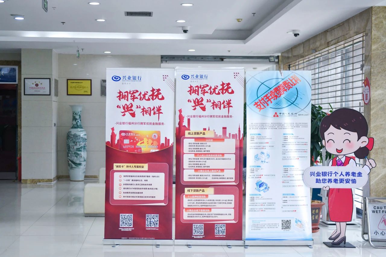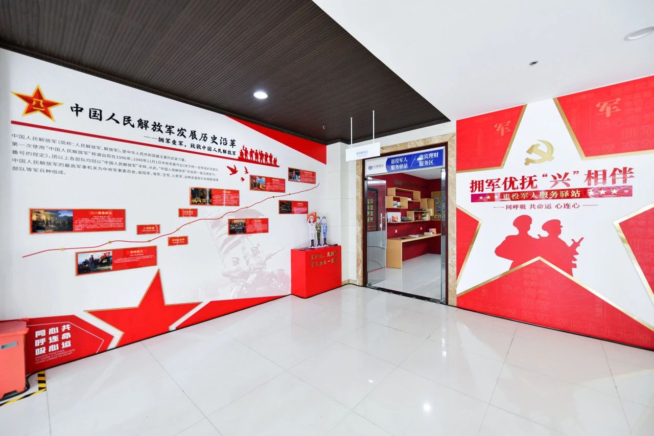 退役军人服务驿站内设有红色文化长廊、新时代双拥工作展示墙、退役军人金融服务展示区、退役军人休息区等活动区域,为退役军人群体提供日常交流、党建共建的场所。兴业银行福州分行还为退役军人群体提供“一揽子”金融服务:线上搭建退役军人个人消费贷款、退役军人个人经营贷款等专属融资绿色通道;线下可通过办理退役军人专属借记卡“拥军卡”,享受“军人/退役军人优先”绿色通道、免收卡工本费和跨行转账手续费等其他专属权益。
