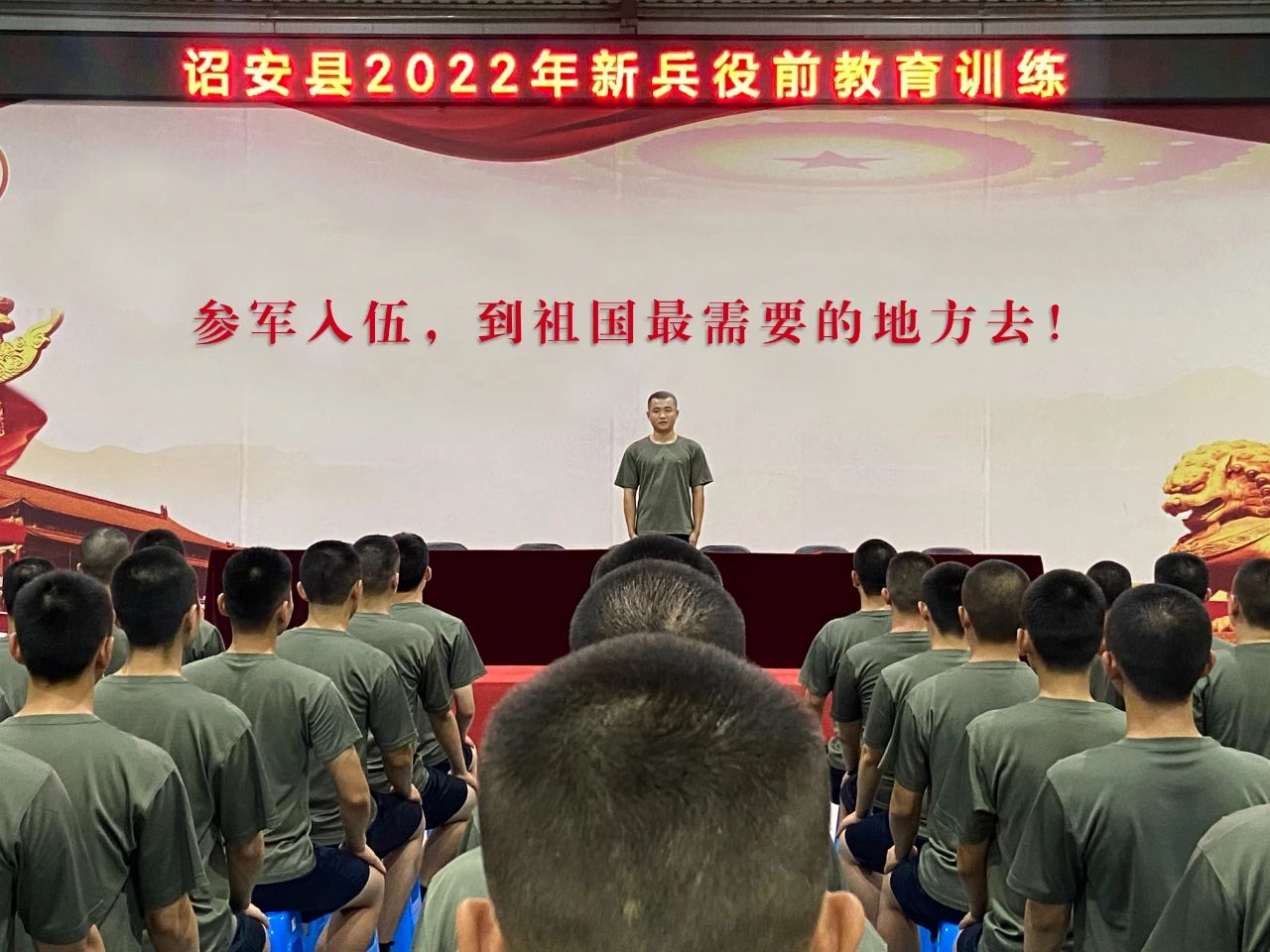 2022年9月15日晚,诏安县研究生学历吴镓斌在新兵役前训练基地分享成长经历