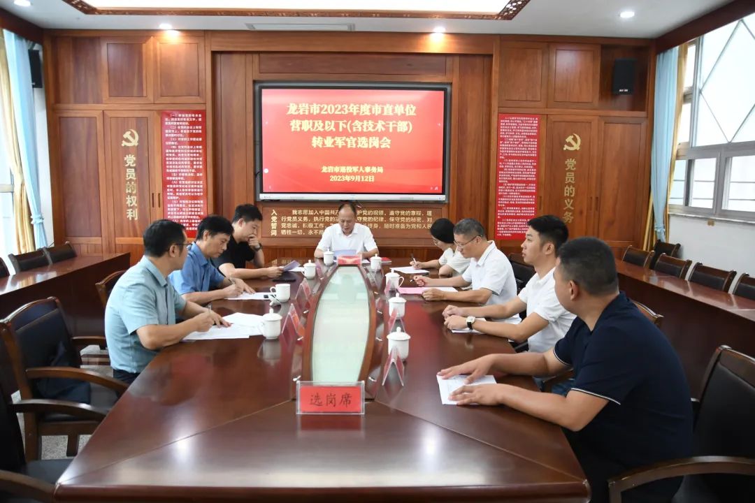 9月12日,龙岩市退役军人事务局组织召开2023年度市直单位营职及以下(含技术干部)转业军官选岗会议,2名转业军官顺利完成选岗。至此,龙岩市接收的13名营职及以下(含技术干部)转业军官已全部确定安置岗位,圆满完成年度转业军官安置任务。
