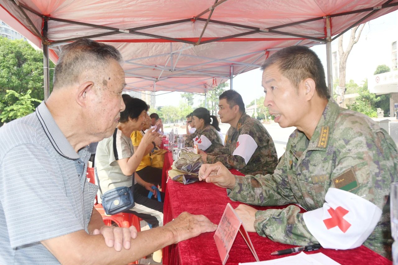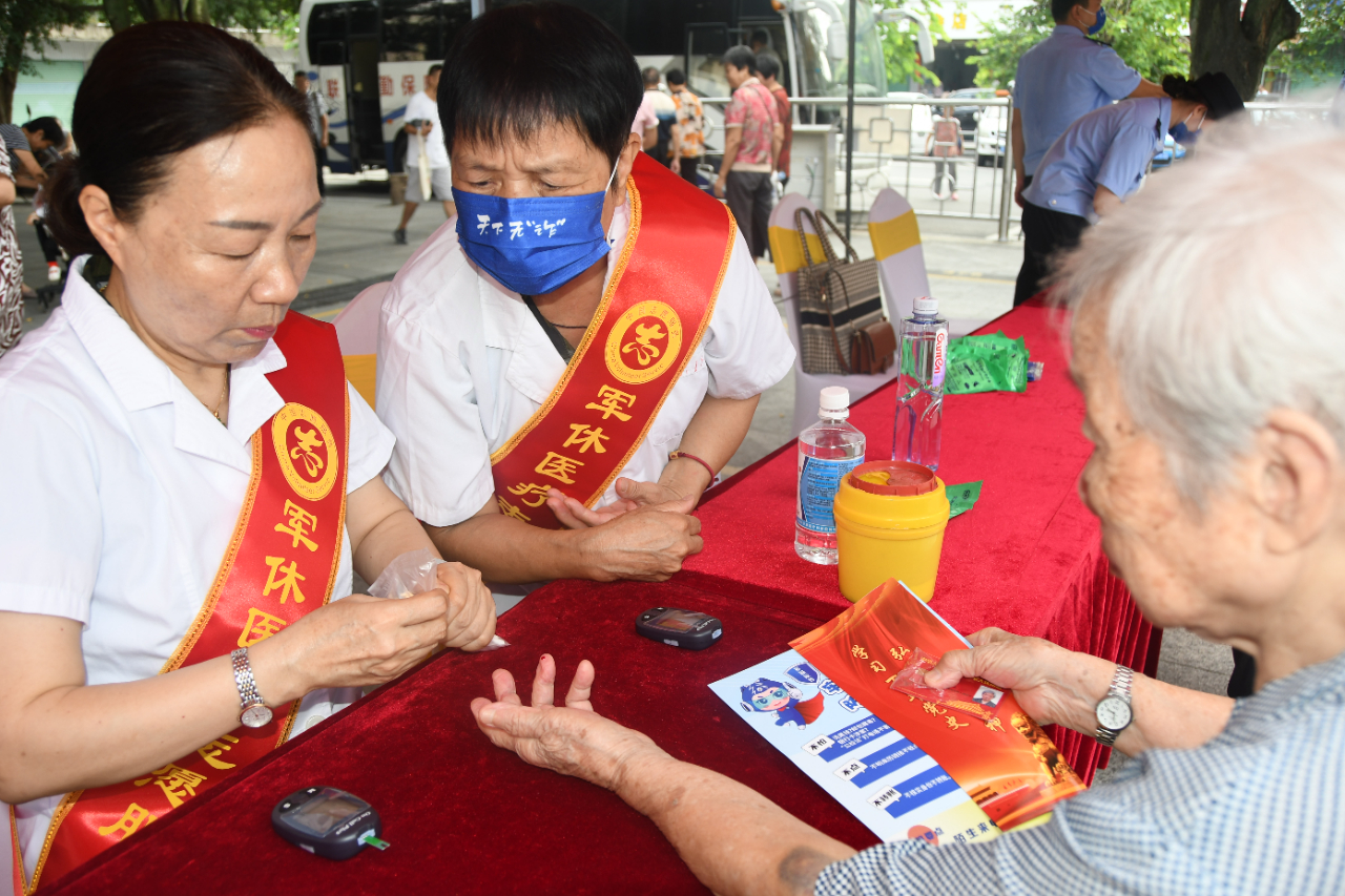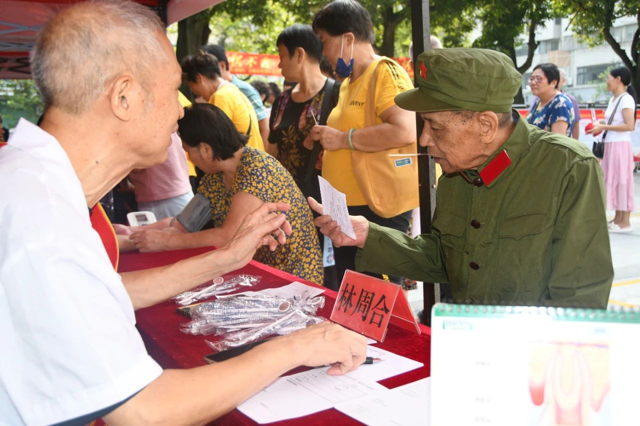 义诊现场,人头攒动。在测血糖处,退役军人、优抚对象持优待证优先检测。漳州市第二军休所所长张华琳介绍,属地不少老兵、优抚对象及居民患者们收到义诊预告后,早早到场等候,有的带着病历和X光片,有的带着服用的药品药单,有的由家人陪同前来问诊。