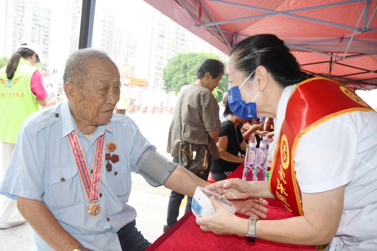 “你们这项活动举办的很好啊,我们作为老兵很光荣也很自豪。”刚测完血压的90岁抗美援朝老兵朱宝锡十分高兴,不停夸赞退役军人事务部门服务保障有力。在场的漳州职业技术学院青年志愿者们被老兵身上的奖章、纪念章吸引,朱老瞬间成了青年追捧的“明星”。