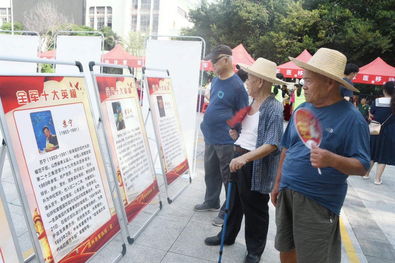 活动现场,主办方还结合“全民国防教育月”增设烈士事迹展、全军十大英模展等国防教育宣传,在义诊同时全方位宣传国防知识、烈士事迹,提升全民国防热、军史热、拥军热。