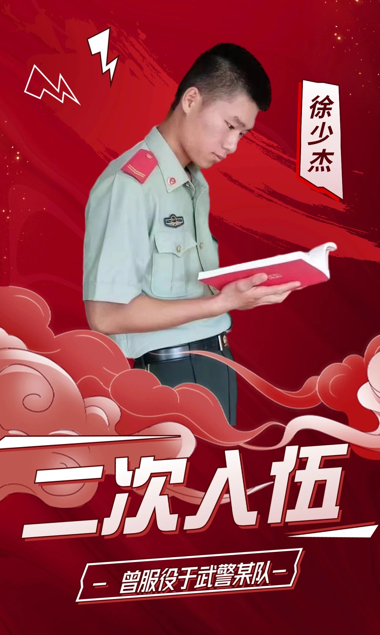 2020年,来自莆田市荔城区的徐少杰怀揣从军梦想入伍,服役于武警某队,开始了第一段军旅征程。在“兵之初”,指导员带领新兵参观荣誉室,历代先辈的光荣事迹在徐少杰心里埋下了敢于担当使命的精神种子。两年间,他在日复一日的军事训练和学习教育中强健体质、增长才干,从心浮气躁的小伙子变成了自立自强的合格兵,收获浓烈真挚战友情的同时也加深了他对军队无法割舍的热爱。