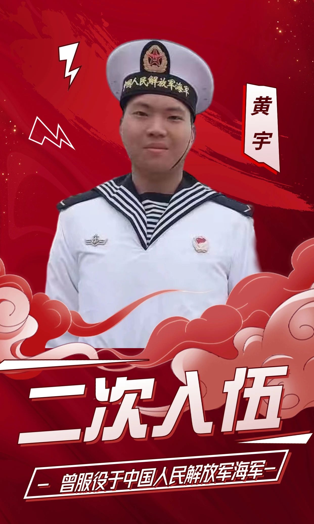 2019年,漳州市龙海区的黄宇带着保家卫国、建功立业的美好愿景来到了军营,成为一名中国人民解放军海军战士。2021年9月,为了完成学业,黄宇带着对军营的不舍挥泪退伍。如今圆满完成学业的黄宇义无反顾的选择再次入伍,继续圆梦军旅,黄宇倍感骄傲和自豪:“面对全新的环境、全新的战友,我会坚持以一个‘老兵’的标准、‘新兵’的姿态来严格要求自己。努力在部队里发光发热、刻苦训练、认真学习,为强军事业贡献自己的一份力量。”