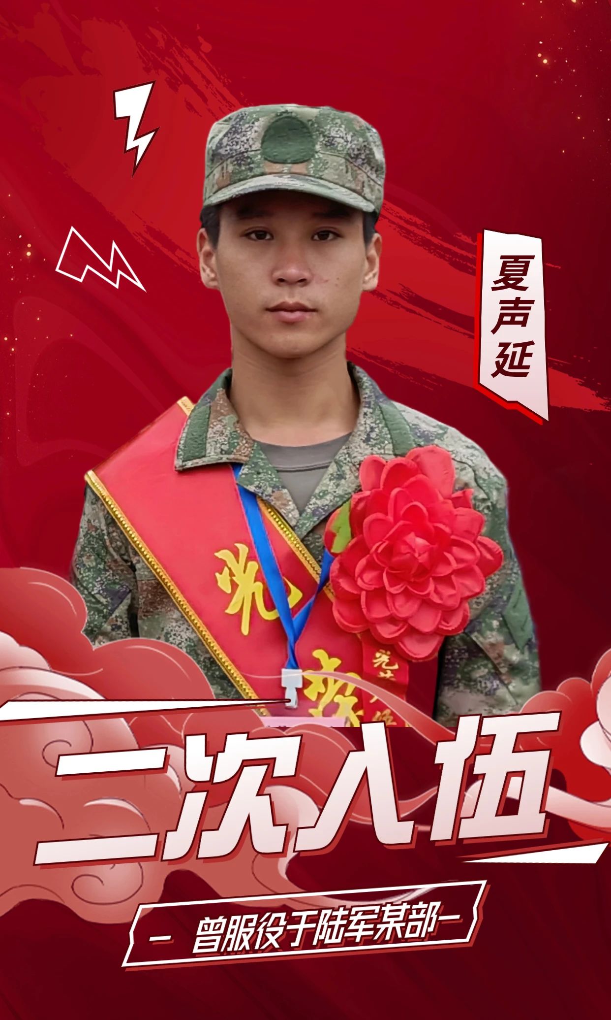 2020年,为了完成自身学业,提高自己的知识水平,他无奈地选择了退伍返乡。回到地方后,在县乡退役军人事务部门的指导下,夏声延享受了退役士兵的各项优抚政策。尤其是退役士兵高职扩招政策让他受益匪浅,通过学习、考试,他获得了全日制专科文凭。他还积极投身于基层工作,当选为村干部和县人大代表,利用自己的知识和能力为乡村振兴尽一份力。