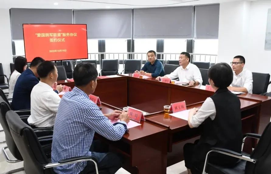 10月19日,鼓楼区退役军人事务局与福州星宸未来酒店管理有限公司、福州金星商务酒店有限责任公司(格菲酒店)签订“爱国拥军联盟”服务协议。鼓楼区退役军人事务局局长、区双拥办主任田德强,云睿酒店负责人宋庆华、格菲酒店总经理詹漂龙等相关领导参加活动。