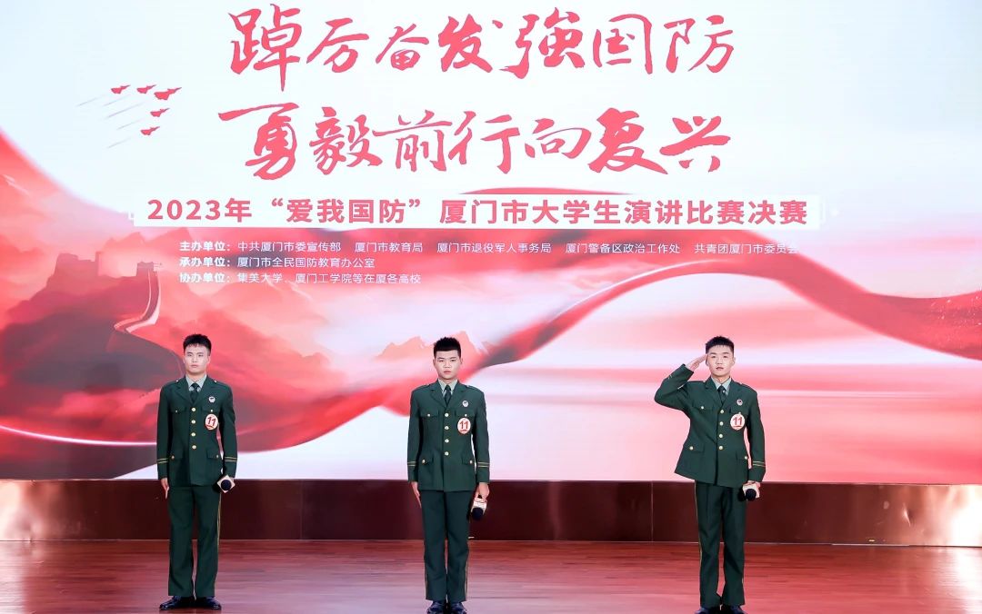 11月10日上午,由中共厦门市委宣传部、厦门市教育局、厦门市退役军人事务局、厦门警备区政治工作处、共青团厦门市委员会主办,厦门市全民国防教育办公室承办,在厦各高校协办的2023年“爱我国防”厦门市大学生演讲比赛在集美大学尚大楼举行,主协办单位分管领导、在厦18所高校师生代表等近500人现场聆听这堂生动的国防教育实践课。