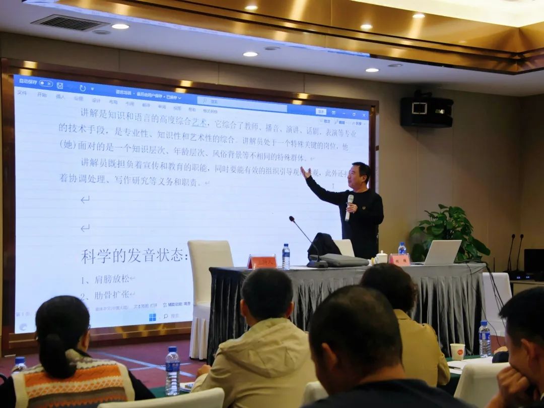 此次培训以“专家授课+互动教学+现场点评”的方式进行,紧贴讲解工作实际,精心设置课程安排,针对性和实操性强,邀请了4位专业培训老师,分别从讲解员形体仪态、专业素养、语言表达、讲解技巧等方面进行授课、演示。在示范讲解中,老师对模拟实操演练的学员进行面对面、一对一的辅导、点评,答疑解惑,让学员们专业性更强、精准度更好、表现力更佳,进一步提升讲解综合技能。