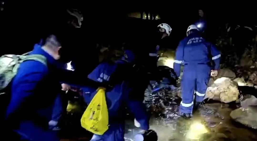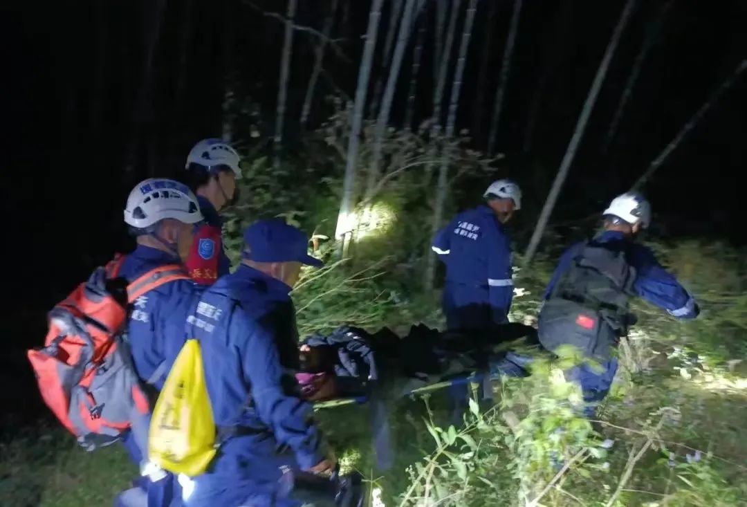 夜间,山中能见度和气温比较低,救援队伍一路翻山越岭,跋涉溪流,在救援队员和当地村民、巡山员的密切配合下,经过近3个小时的不间断搜救,在深山中找到已经陷入昏迷的受伤人员,经过简单的医疗救助后,救援队用担架将伤者运送下山,移交给家属和医护人员。
