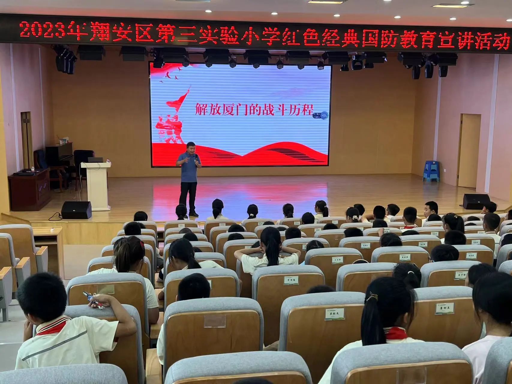 11月26日下午,厦门市退役军人国防教育宣讲团陈友全老师到翔安区第三实验小学开展国防教育宣讲