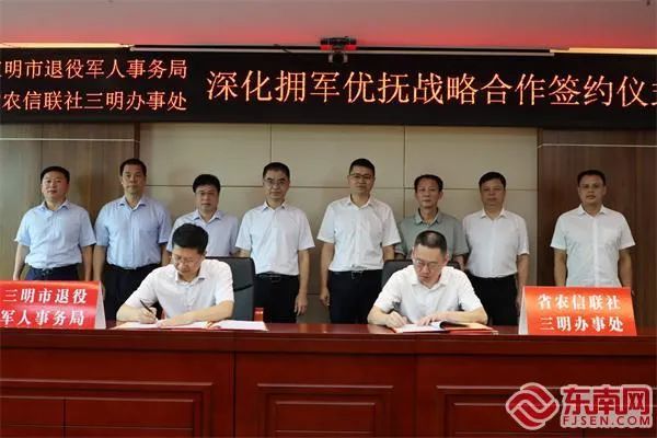 7月10日,三明市退役军人事务局与省农信联社三明办事处签订拥军优抚战略合作协议,现场向三元区、永安市、沙县区的退役军人群体综合授信各1亿元。