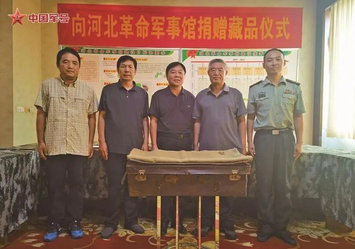 2024年8月1日,李斌(左三)向河北革命军事馆捐赠外公赖官宜烈士的遗物。