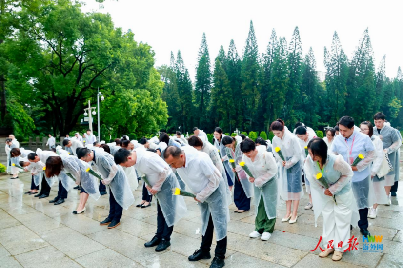 7月22日,参赛选手前往广州起义烈士陵园瞻仰烈士纪念设施并敬献花篮。(主办方供图)