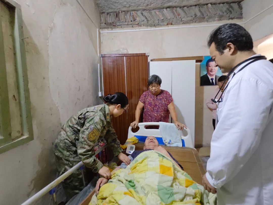 活动现场,第910医院组织呼吸内科、消化内科、心血管内科、眼科、骨科、普通外科、药学科、护理等专业科室医护人员为退役军人、伤残军人、带病回乡退伍军人、烈士遗属等优抚对象开展专科坐诊,帮助到场对象测量血压、心电图等基础科目检查,针对优抚对象(特别是老龄对象)常见的眼科疾病、关节疼痛、高血压等慢性病,提供个性化诊疗建议,免费发放消炎止痛、降血压、皮肤外用等常用药品及医疗防护物资。对于行动不便的高龄或失能、半失能对象,还专门组织医护人员上门巡诊,做到送医送药上门服务。“我先生肢体二级残疾、瘫痪在床行动不便,日常需要服用降脂降压药等药品,你们送医送药上门,详细叮嘱用药方法,真是太暖心了!”台商投资区东园镇退役军人黄振辉妻子动情地说。