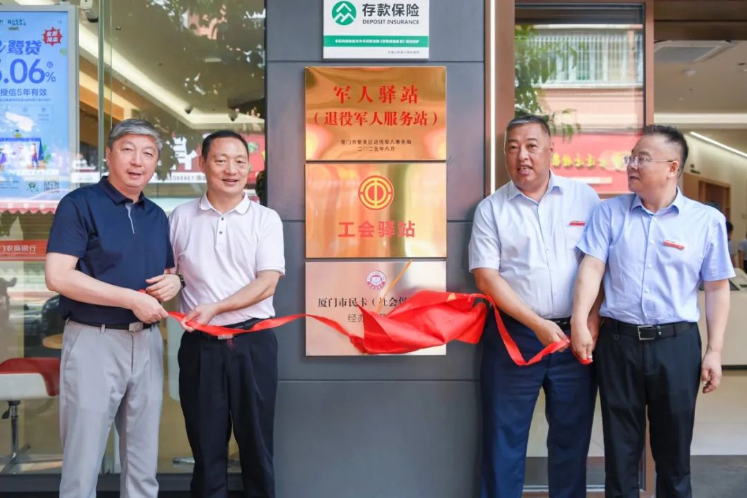 8月1日,厦门农商银行与集美区退役军人事务局联合打造的“军人驿站(退役军人服务站)”,分别在该行灌口支行、后溪支行揭牌,为广大军人和退役军人提供专属优惠优待服务。
