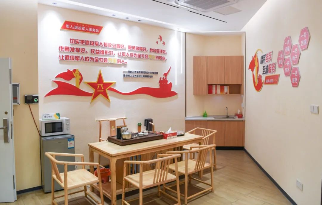 新成立的两个“军人驿站(退役军人服务站)”设置了共享茶室、拥军业务咨询区、军人优先窗口、党建书吧等功能区,为军人和退役军人提供共创共享、业务咨询的场所。银行柜台还提供优先叫号、优先办理业务服务。