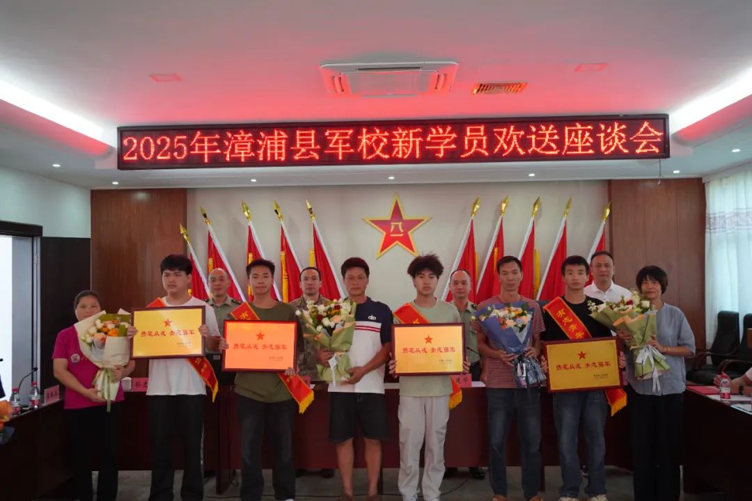 这份“入学即入伍”的荣光,早在8月8日就已在全县点燃。当日,漳浦县隆重举行2025年军校新学员欢送座谈仪式,县人武部、县退役军人事务局、往届军校学员代表与8名新生及家长齐聚一堂,共同见证荣光。