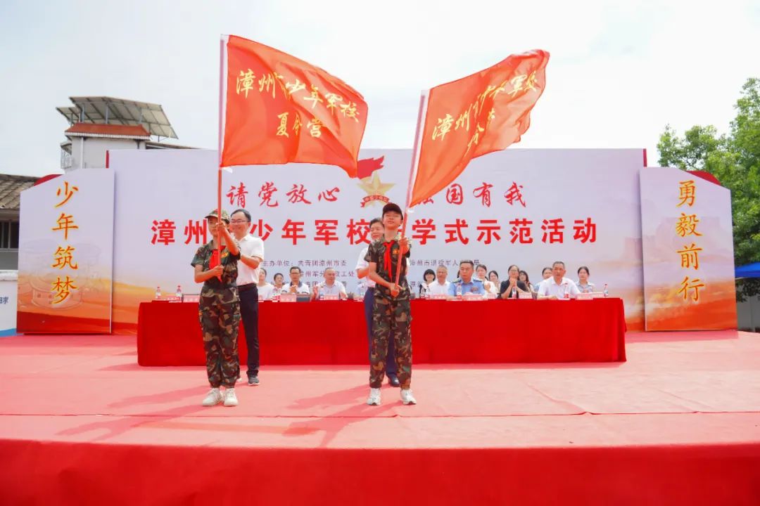 在庄严的升旗仪式和嘹亮的国歌声中,开学式拉开帷幕。少先队员代表献词后,军地有关领导共同为少年军校揭牌,并向营员代表授予少年军校营旗,宣告漳州市少年军校正式启用。