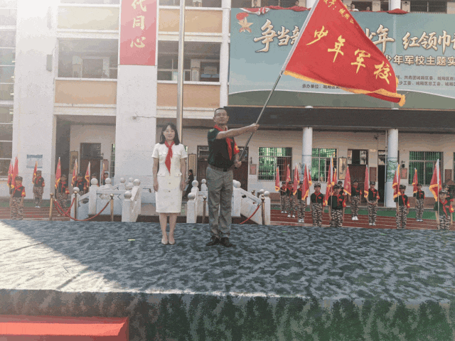 近日,莆田市第一所少年军校在城厢区第二实验小学授旗成立。