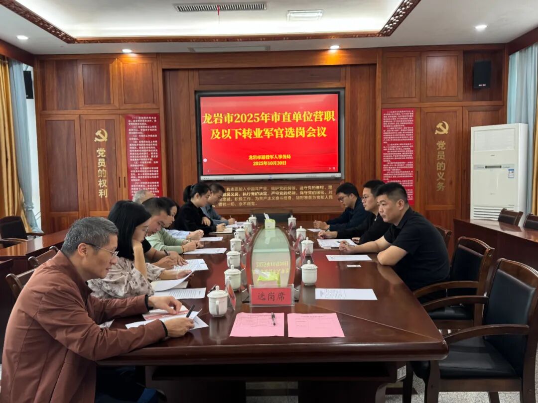 10月30日上午,龙岩市2025年度市直单位营职及以下转业军官选岗会议顺利举行,3名符合市直部门安置条件的转业军官成功选定心仪岗位,这标志着本年度转业军官安置任务圆满完成,龙岩市接收的19名转业军官全部安置到位。
