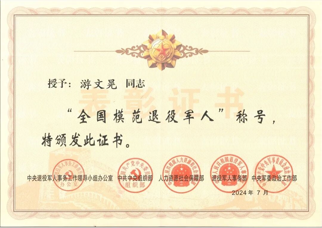 一本证书,承载着一段跨越军地与时代的爱心传奇;一声“游爸爸”,凝聚着千余名孩子重燃的希望。游文晃用半生步履,在红色基因与雷锋精神的交汇处,踏出了一条芬芳满径的仁爱之路。这条路上,军魂永驻,善意长青。
