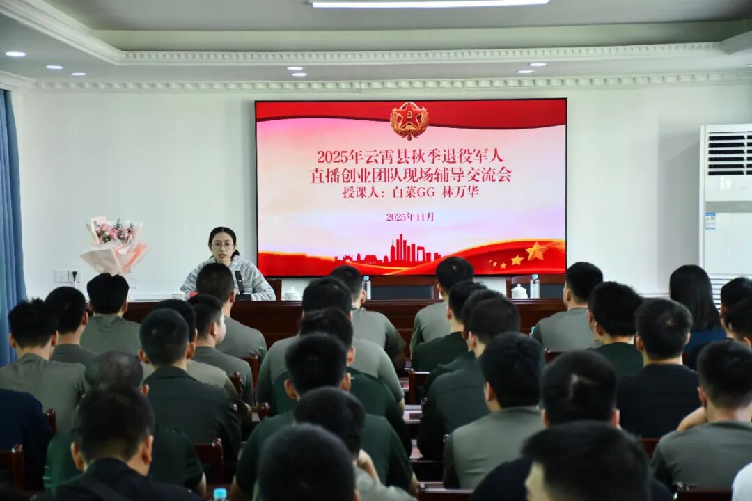 “账号定位要清晰,内容要有温度,选品要贴近生活。”11月14日,在漳州市云霄县退役军人直播创业团队现场辅导交流会上,百万粉丝网红“白菜GG”林万华正结合自身实战经验,为台下数十位退役军人传授直播带货的实用技巧。这场别开生面的交流会,将当天举办的2025年秋季退役军人适应性培训结业仪式推向了高潮。