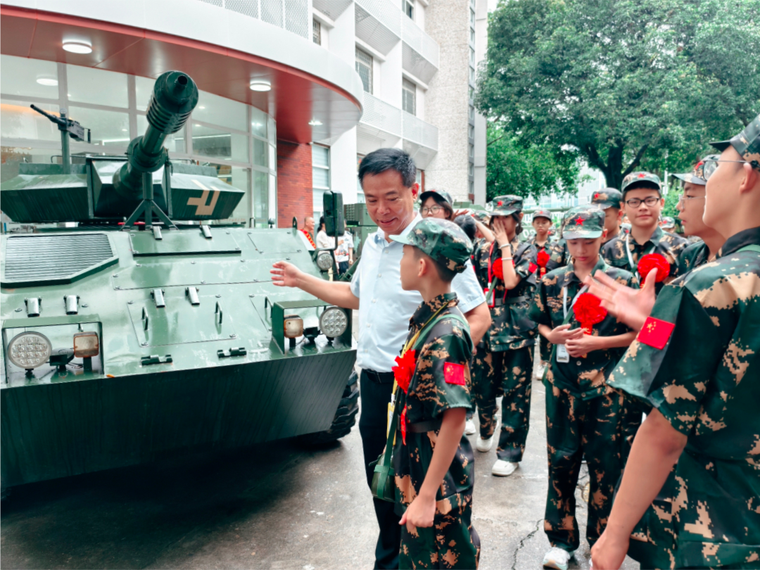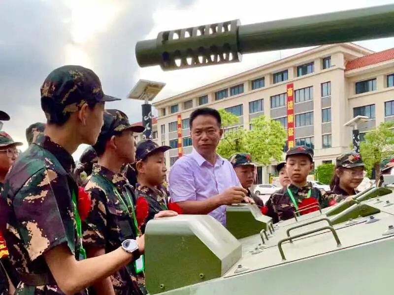 ▲庄林为宁夏来厦研学的孩子讲解坦克性能
