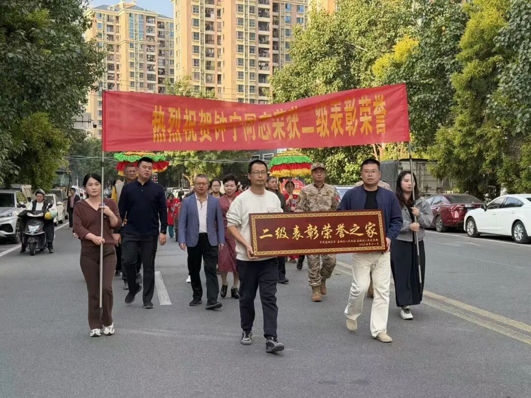 伴随着激昂的锣鼓声和喜庆的鞭炮声,沿途的乡亲们纷纷驻足称赞。在钟宁家中,慰问组人员为其佩戴大红花和绶带,宣读立功喜报,送上慰问金,并致以最热烈的祝贺。据悉,钟宁入伍以来,扎根高原,建功立业,多次参加重大军事演练活动,特别是在今年的西藏日喀则定日抗震救灾任务中表现突出,圆满完成任务,先后被总队评为优秀共产党员、机关服务基层先进个人,荣立三等功4次,多次受到嘉奖。