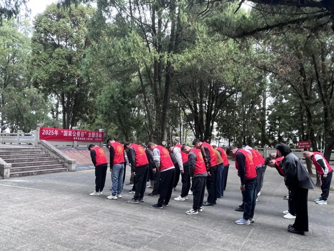 12月13日,龙岩市武平县退役军人事务局联合县司法局组织职工干部和社区矫正对象前往县革命烈士陵园开展国家公祭日主题活动,以肃穆的仪式缅怀英烈,以实际行动铭记历史,以红色教育淬炼思想。