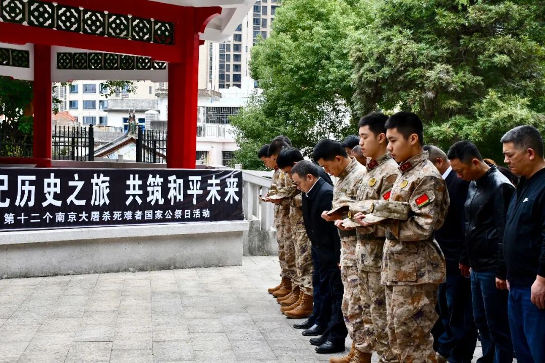 12月12日,福鼎市烈士陵园庄严肃穆,松柏含悲,由福鼎市退役军人事务局联合驻鼎部队主办的“铭史追思聚力前行”国家公祭日纪念活动在此隆重举行。福鼎市退役军人事务局干部职工、驻鼎部队官兵、退役军人代表及群众代表齐聚英烈纪念碑前,深切缅怀南京大屠杀死难同胞,追思革命先烈不朽功绩。