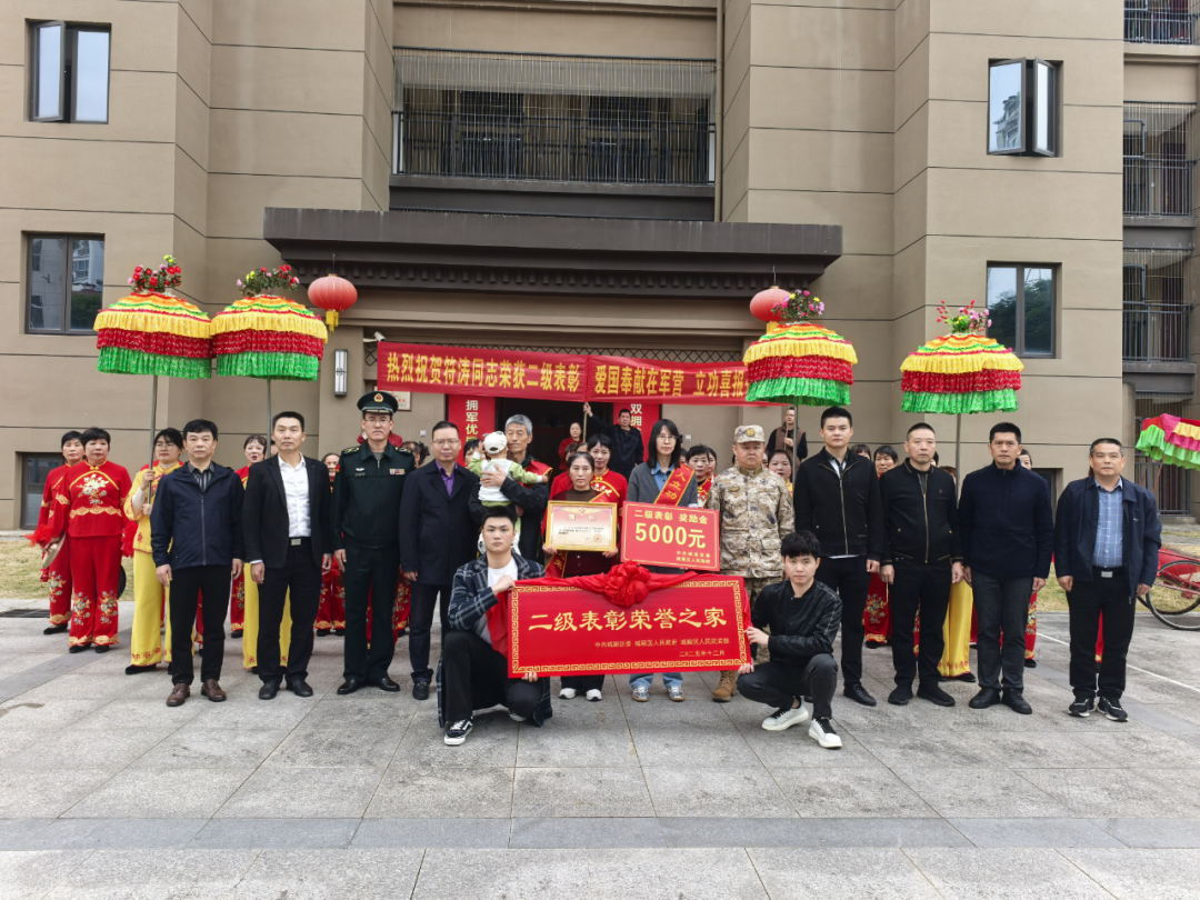 12月12日,由莆田市城厢区退役军人事务局、区人武部、龙桥街道联合组成的拥军优属慰问小组,在龙桥社区居委会组织的锣鼓队簇拥下,为荣获部队二级表彰的现役军人符涛家庭送上立功喜报和“二级表彰荣誉之家”功勋牌匾,传达党和政府对军人军属的问候与祝福。现场锣鼓喧天,引得不少群众驻足观看,大家纷纷投来羡慕和赞许的目光,气氛热烈非凡。