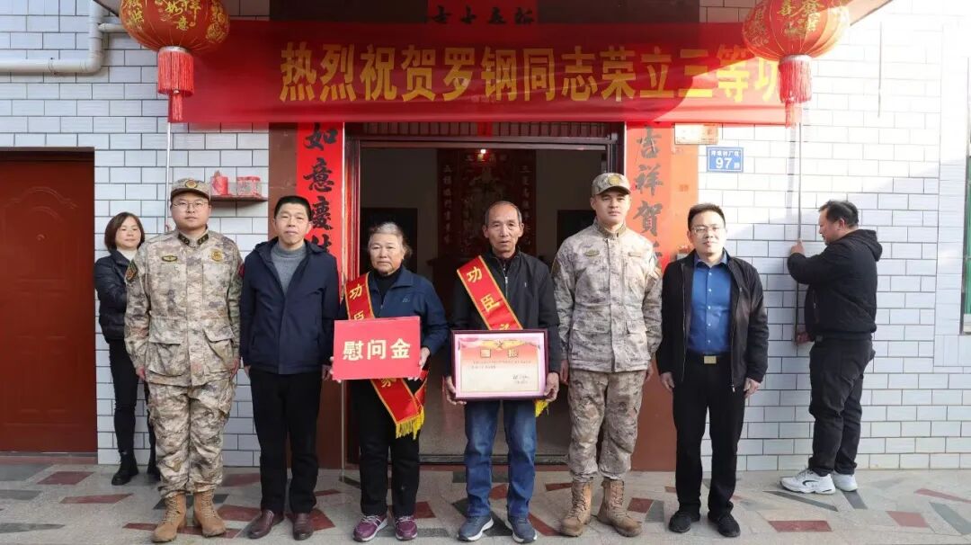 伴随着送喜鼓点与鞭炮声,送喜报工作队先后抵达各立功军人家中。工作队为军人家属佩戴上象征荣誉的绶带,宣读立功喜报,介绍军人在部队的优异表现和立功事迹,并将慰问金送到家属手中。军人家属们难掩激动与自豪之情,纷纷表示将继续做好军人的坚强后盾,鼓励亲人在部队安心服役、刻苦训练。