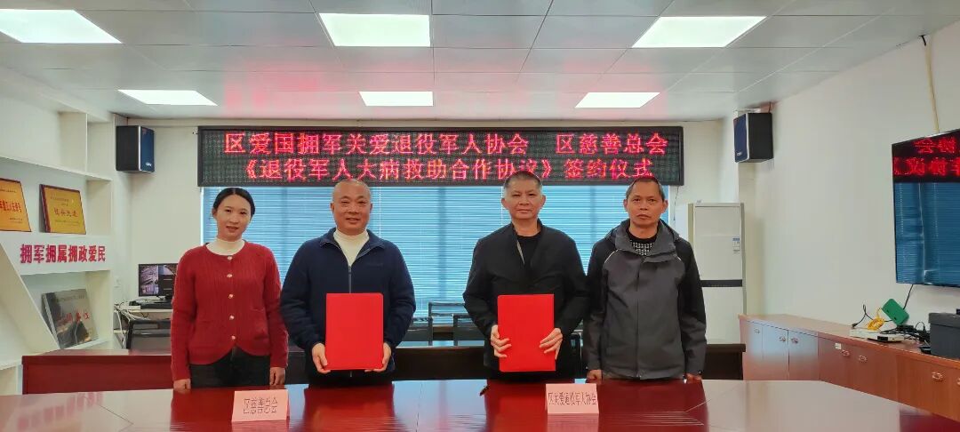 1月15日,龙岩市永定区爱国拥军关爱退役军人协会与永定区慈善总会在区退役军人事务局四楼会议室正式签订《退役军人大病救助合作协议》。