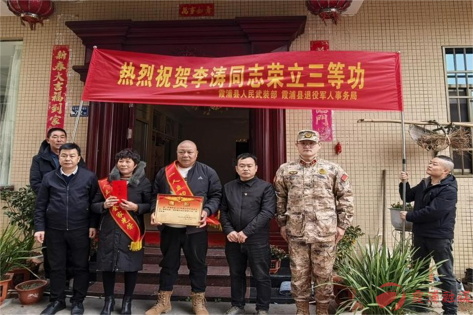 1月20日,宁德市霞浦县人民武装部、县退役军人事务局组成送喜队伍,分赴沙江镇、长春镇为荣立三等功的现役军人卢庆贵、连王进和李涛家庭,送上立功喜报与慰问。
