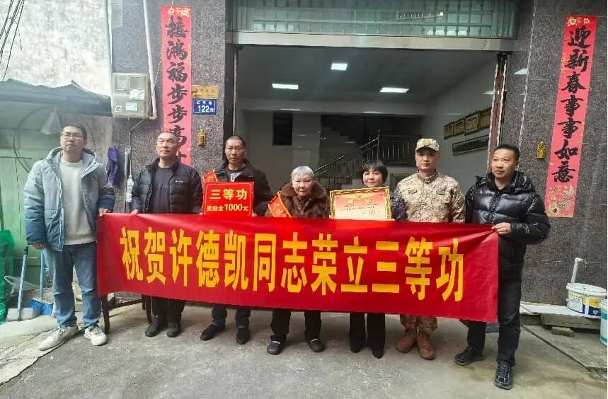 近日,宁德市周宁县民政和人社局(退役军人事务局)联合县人武部、乡镇工作人员,分赴狮城镇、咸村镇,为荣立三等功的现役军人许德凯、何海东家庭送上立功喜报与慰问,让“一人立功、全家光荣”的氛围在闽东山水间愈发浓厚。