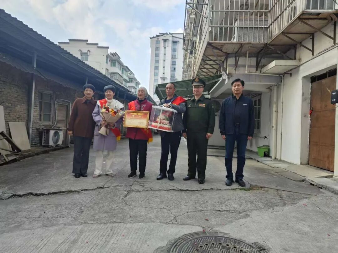 1月17日,三明市泰宁县人武部部长林永田与副县长严生英一同带队,携县人社局及杉城镇人武部相关负责人一同将三等功喜报送到现役军人江中发家中,为其母亲的八十岁寿辰注入了别样的荣耀与温情。