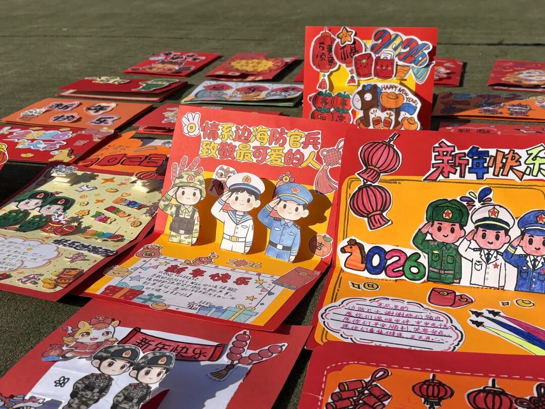 校园里,童声琅琅,画笔传情。适逢《军民情·七律》发表35周年,福州多所学校师生以丰富形式表达对子弟兵的敬意。福州教育学院附属第二小学、附属第三小学、福州市鼓楼实验小学、福州市直机关幼儿园及福州市实验幼儿园学生们齐声诵读《军民情·七律》并录制为电子贺卡,同时亲手绘制祝福贺卡、年画,将童真心意寄往边关。