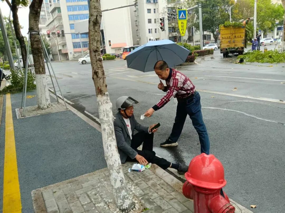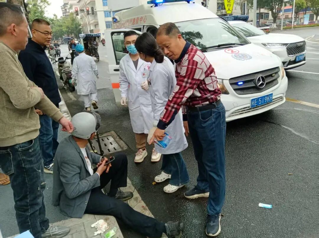 途经事发地点的退役军人沈秋丰第一时间停下脚步,毫不犹豫上前开展救助。他耐心安抚受伤群众的情绪,迅速帮忙联系伤者家属及其所在单位,同时立即拨打120急救电话,全程守在伤者身旁,为后续医疗救治争取了宝贵时间。