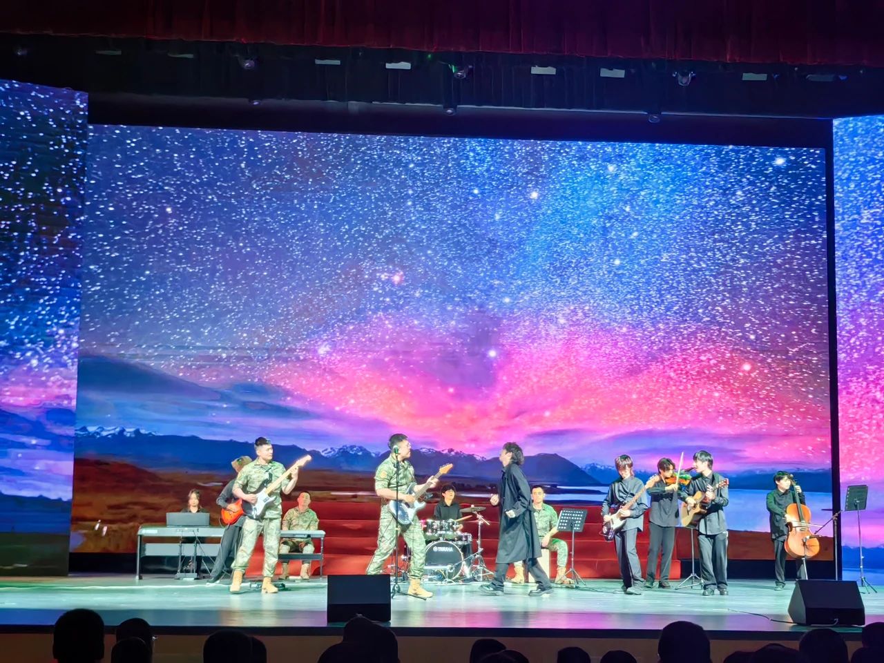 晚会演出在扬琴重奏《将军令》的热情氛围中启幕,随后,葫芦丝、竹笛演奏《星星索》,二胡演奏《战马》和舞蹈《采茶》等经典曲目轮番上演,展现了文艺工作者们对党的热爱和对祖国的深情。小合唱《战海疆》以及竹笛和钢琴演奏《走进快活林》、大提琴二重奏《灯火里的中国》等节目,更是将晚会推向了一个又一个高潮,晚会在雄壮有力的合唱《为了祖国去战斗》中落下帷幕。