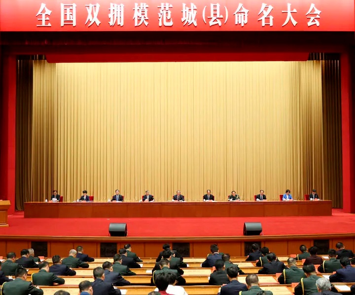 4月23日,全国双拥模范城(县)命名大会在北京召开。会上传达了中共中央总书记、国家主席、中央军委主席习近平重要指示。中共中央政治局常委、国务院总理李强出席大会并讲话。新华社记者 丁海涛 摄