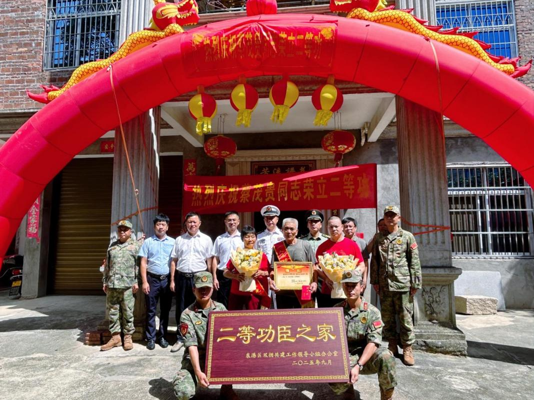 活动现场,气氛热烈,泉港区人武部部长何晨凡现场宣读了蔡茂贵同志二等功喜报,泉港区政府副区长朱添洪郑重地为蔡茂贵父母佩戴绶带、送上鲜花,泉港区委常委、区人武部政委熊洪向蔡茂贵父母送上立功慰问金。在热烈的掌声中,送喜报队伍还为蔡茂贵家属送上“二等功臣之家”牌匾,党和政府对功臣及其家属的关怀和敬意,传递到现场每个人的心中,邻里乡亲们纷纷投来赞许的目光,为这份荣耀感到由衷的自豪。