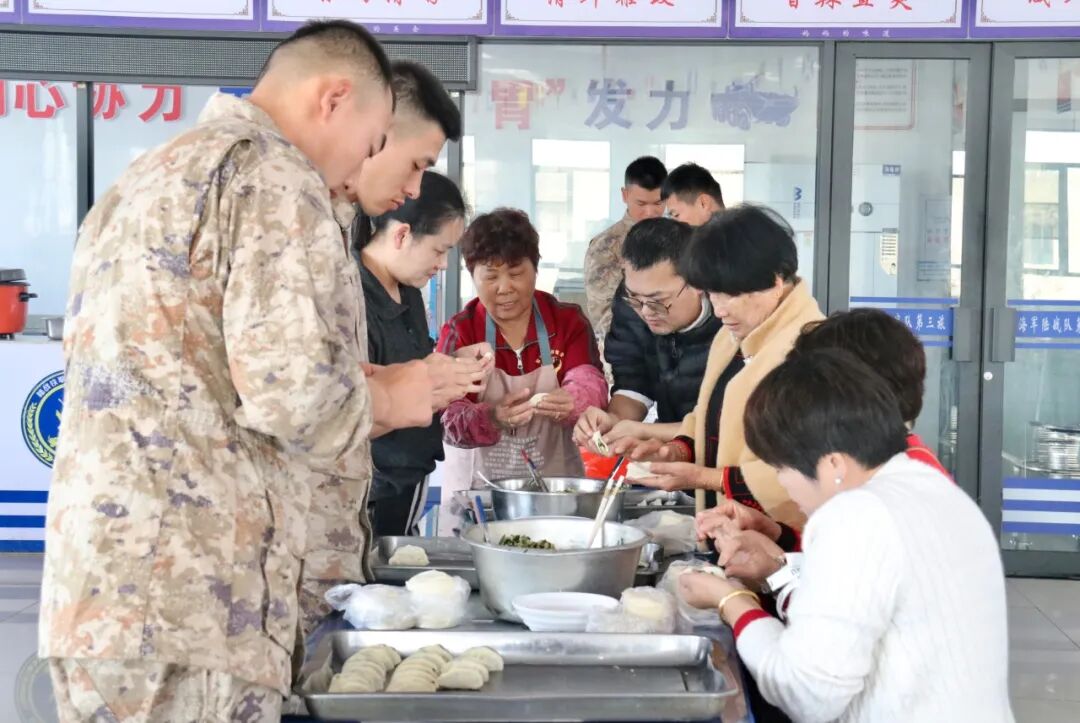 近日,驻石部队某营区食堂内暖意融融。许珊雅和拥军大妈缝补队的成员们带着面粉和馅料,与官兵们围坐在一起,边包饺子边话家常,欢声笑语中弥漫着家的味道。