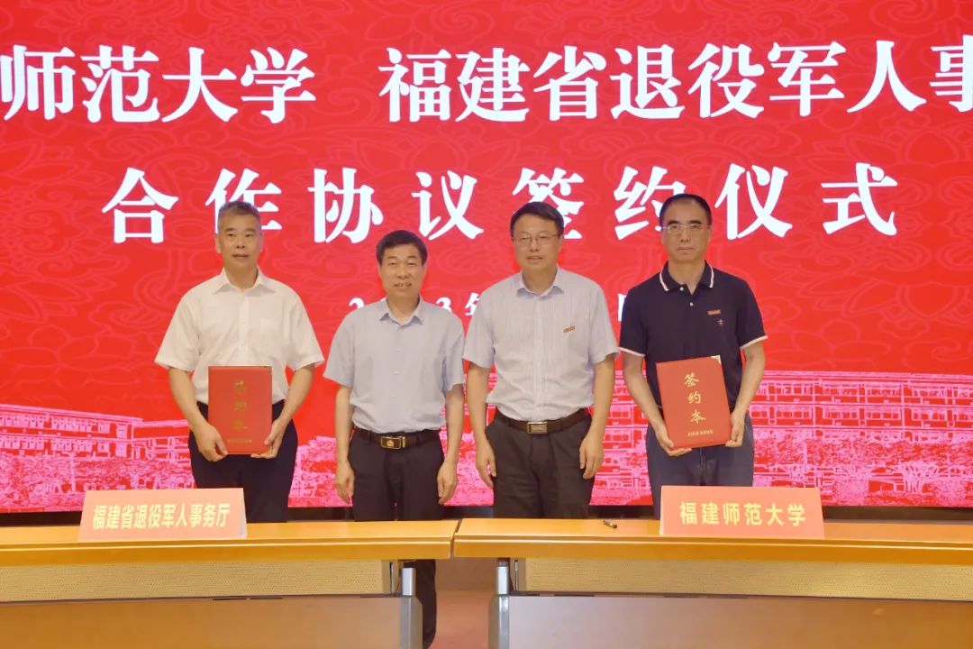 福建师大党委书记潘玉腾,省退役军人事务厅党组书记、厅长罗庆春在签约仪式上致辞。福建师大副校长郑家建和省退役军人事务厅党组成员、副厅长陈浩代表双方签署合作协议。
